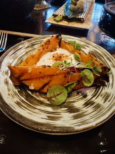 Grilled sweet potato with lemongrass and cilantro — these flavors paired well together.