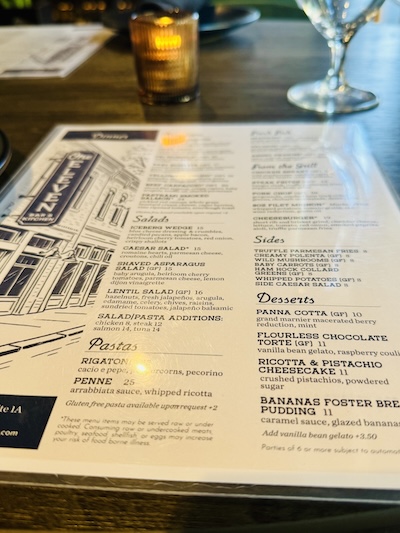 They have quite a few items on the menu from the grill, salads, pastas, fresh fish, etc. They also have a lot of desserts. Not only do they have the four (4) desserts listed on the menu, but if you go online, you will find eleven (11) different desserts on their menu. I think they expanded the menu since ths post.