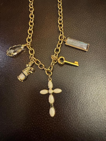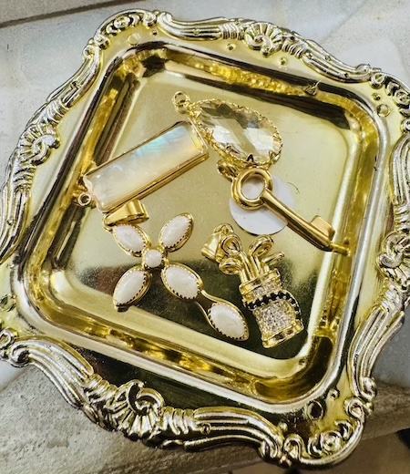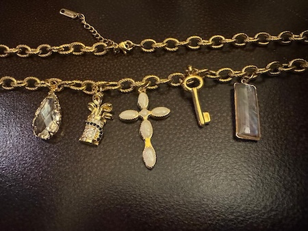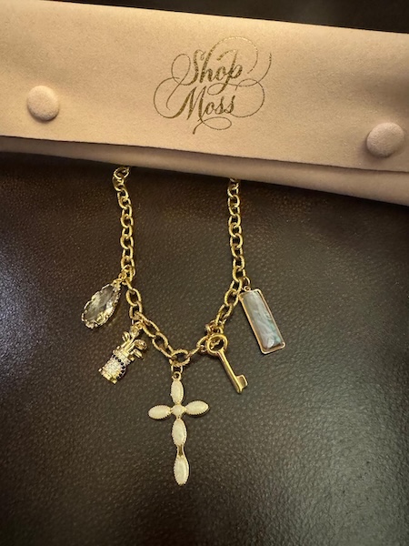 It was so difficult to choose my charms. I love them all. I like the vintage gold, and I chose one of her vintage key charms to add to my necklace. Vania’s jewelry has been featured on Netflix shows, ABC, The Bachelor in Paradise, and People Magazine.