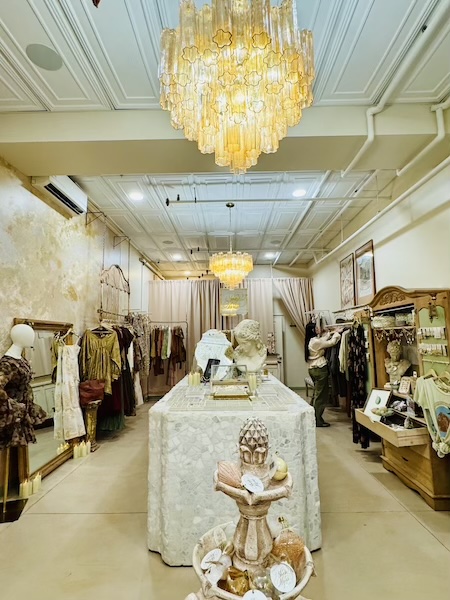 Her boutique is absolutely breathtaking. Her husband built the beautiful stone bar in the middle of the shop.